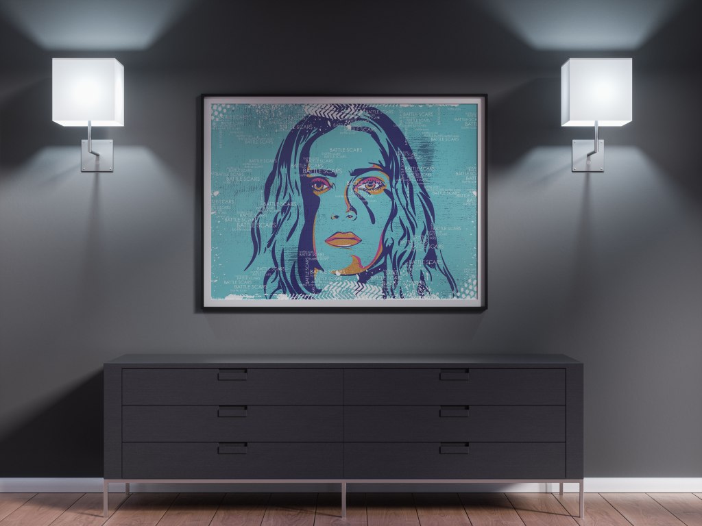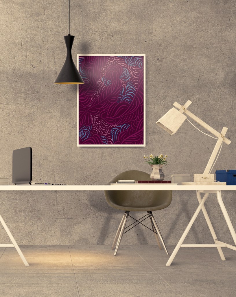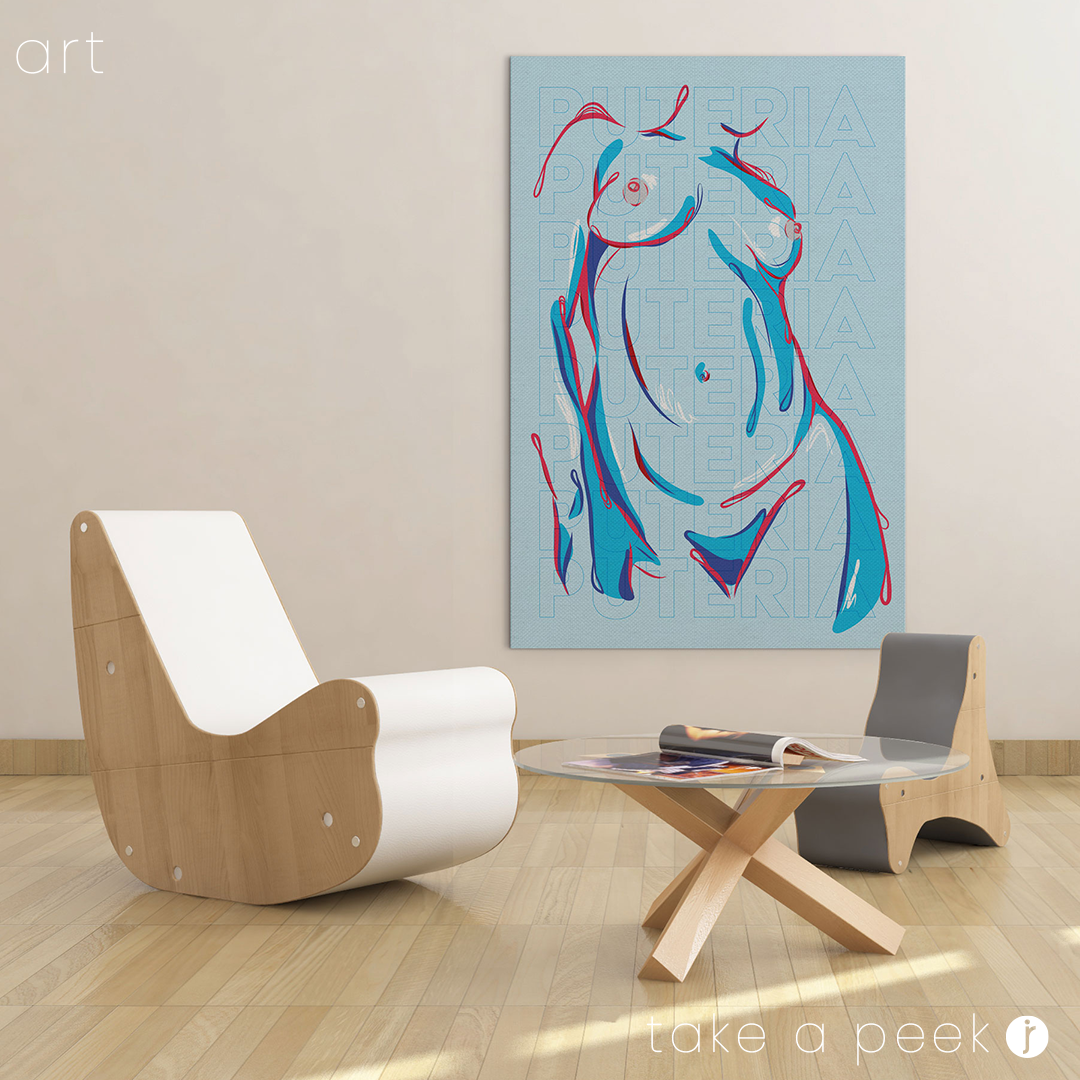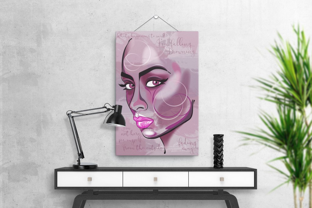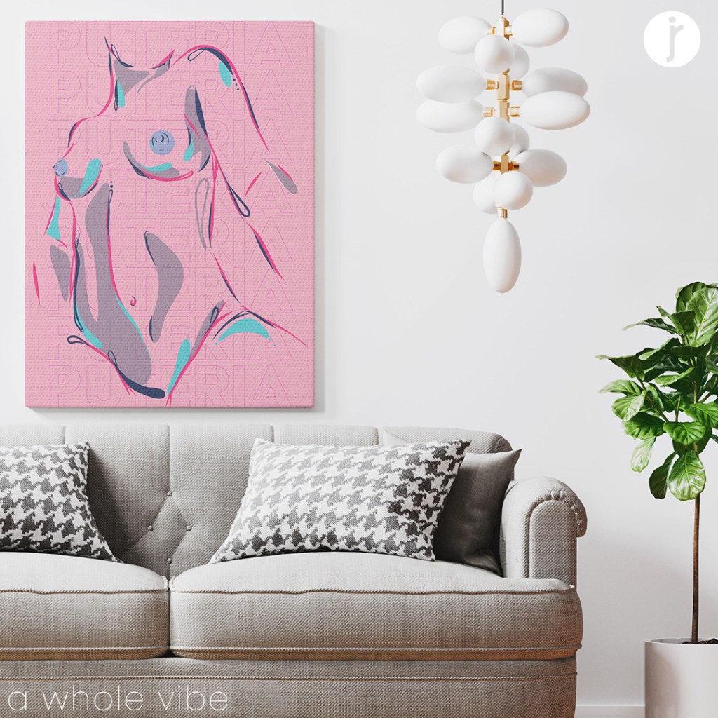 Digital illustration shown as mockup on canvas within a lifestyle setting. Design is available to purchase through the official online shop www.madebyjroche.com